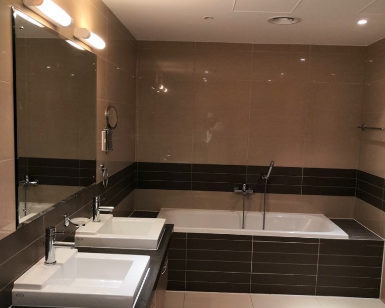 First Floor: - Living area - Bedroom with en-suite bathroom, fitted wardrobes, and balcony - Bedroom with en-suite bathroom